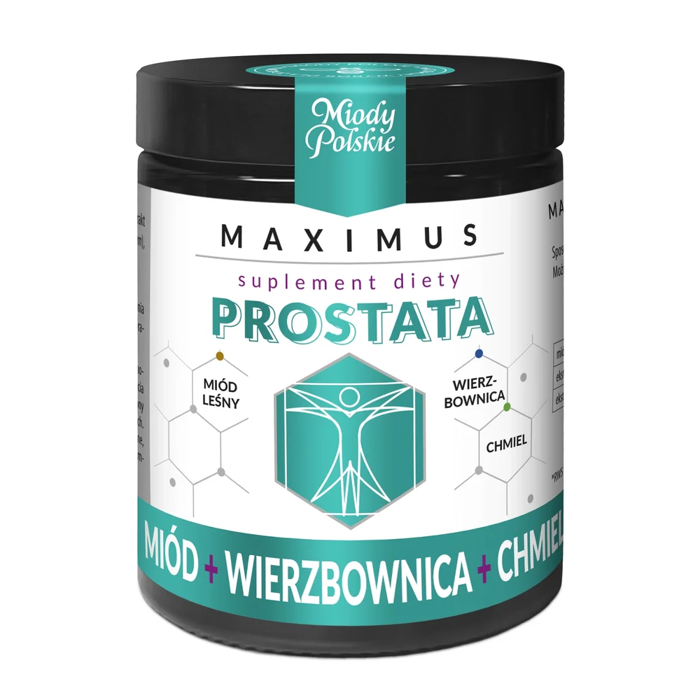 Maximus Prostata od Miody Polskie to suplement w formie płynu, zawierający miód oraz wyciągi z wierzbownicy wąskolistnej i chmielu zwyczajnego. Przeznaczony dla dorosłych mężczyzn.