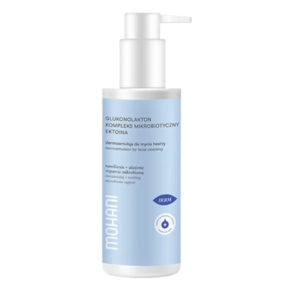 Mohani Derm, dermoemulsja do mycia twarzy to produkt kosmetyczny, którego formuła łączy działanie oczyszczające z właściwościami pielęgnacyjnymi, dostosowaną do wrażliwej i skłonnej do podrażnień skóry. Preparat jest stworzony z myślą o codziennym stosowaniu, eliminując zanieczyszczenia, nadmiar sebum oraz pozostałości po makjażu. Zawiera składniki, które wspierają naturalną barierę hydrolipidową skóry.