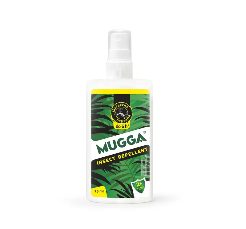 Oryginalna Mugga Spray w formie płynnej do bezpośredniej aplikacji na odzież i odkryte części ciała - to najwyższej jakości repelent chroniący ciało ludzkie przed komarami tropikalnymi i europejskimi.
