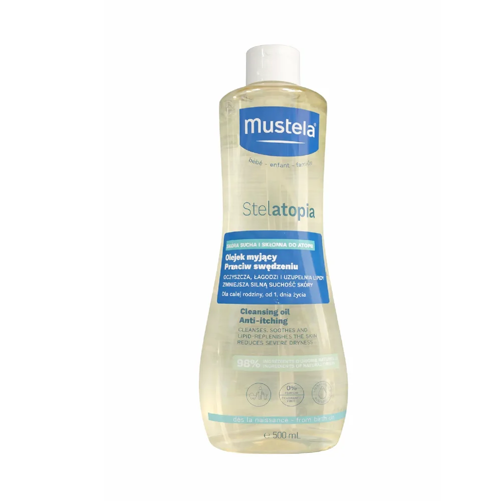 Myjący olejek MUSTELA Stelatopia doskonale nadaje się do pielęgnacji skóry z tendencją do atopii i może być stosowany już od urodzenia. Olejek w delikatny sposób myje skórę, pozostawiając na niej ochronny film, który chroni ją przed wysuszającym działaniem twardej wody. Kremowa piana olejku łatwo się spłukuje, pozostawiając skórę miękką i elastyczną. Olejek jest delikatny dla oczu.