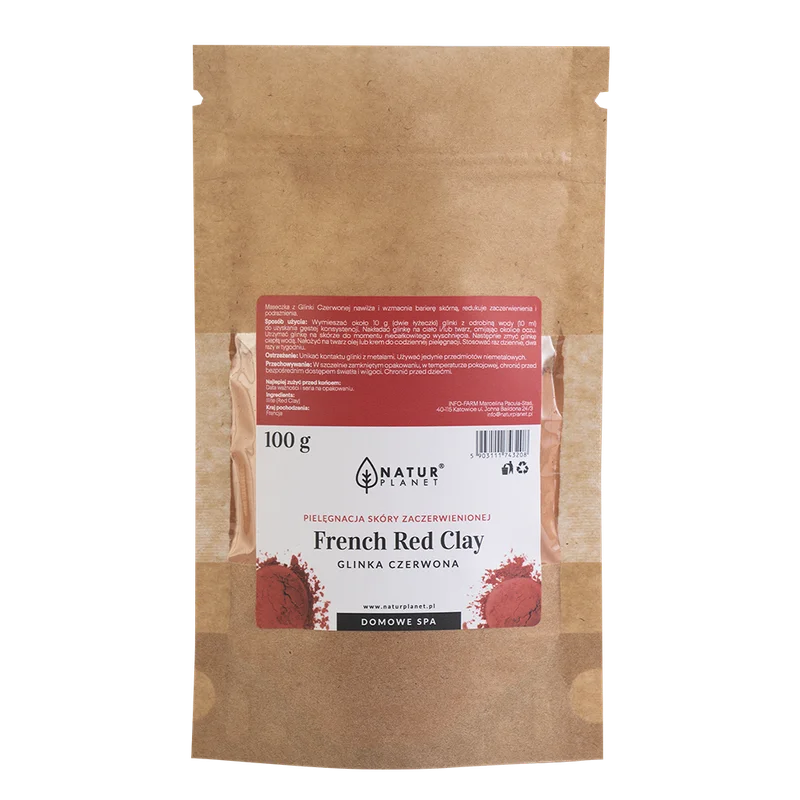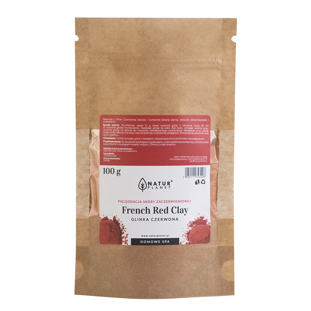 Natur Planet French Red Clay francuska czerwona glinka kosmetyczna do skóry naczynkowej, proszek 100 g