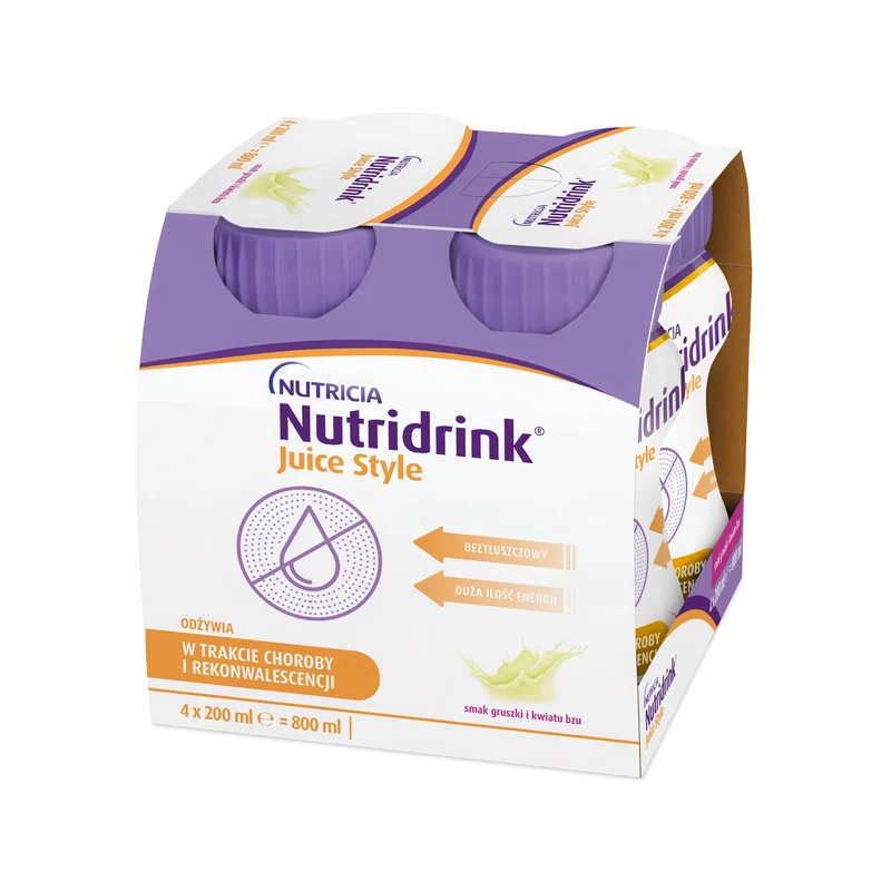 - Nutridrink Juice Style o smaku gruszki i kwiatu bzu to gotowy do spożycia płyn o wysokiej wartości energetycznej, stworzony dla osób wymagających dodatkowego wsparcia żywieniowego.