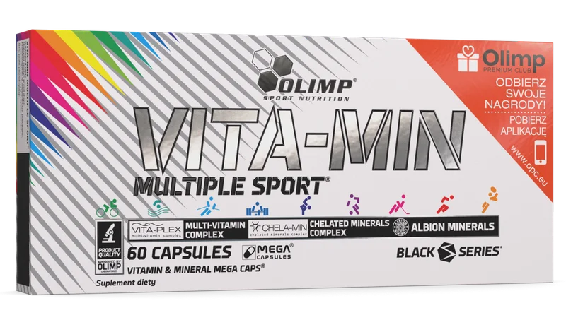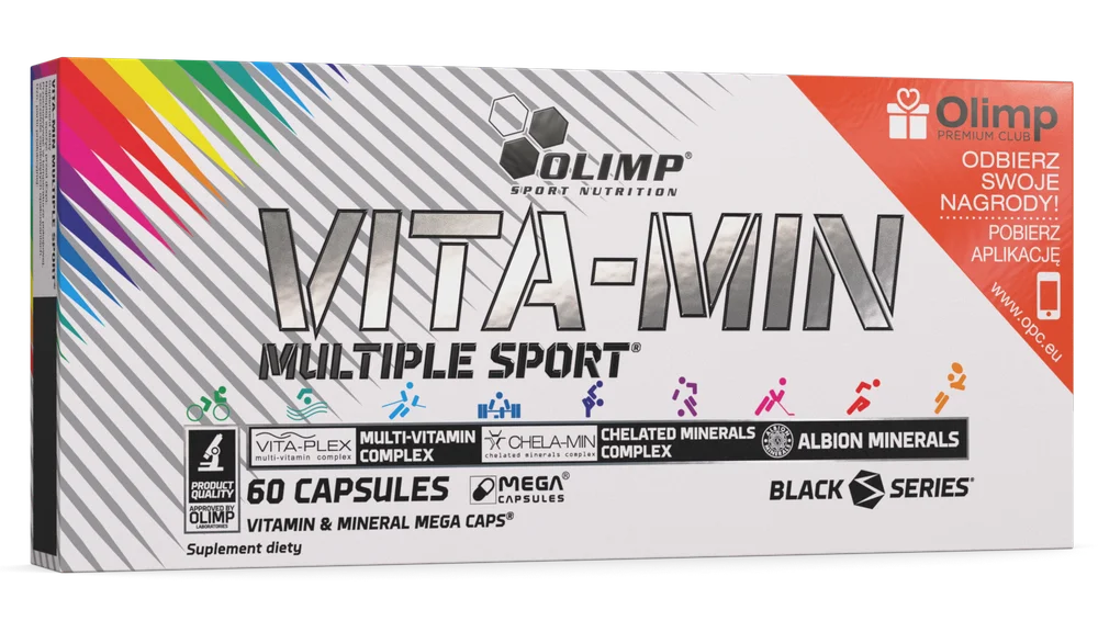 Olimp, Vita-min Multiple Sport to suplement diety zawierający w swoim składzie witaminy i minerały połączone z roślinnymi ekstraktami. Produkt przeznaczony dla osób dorosłych.