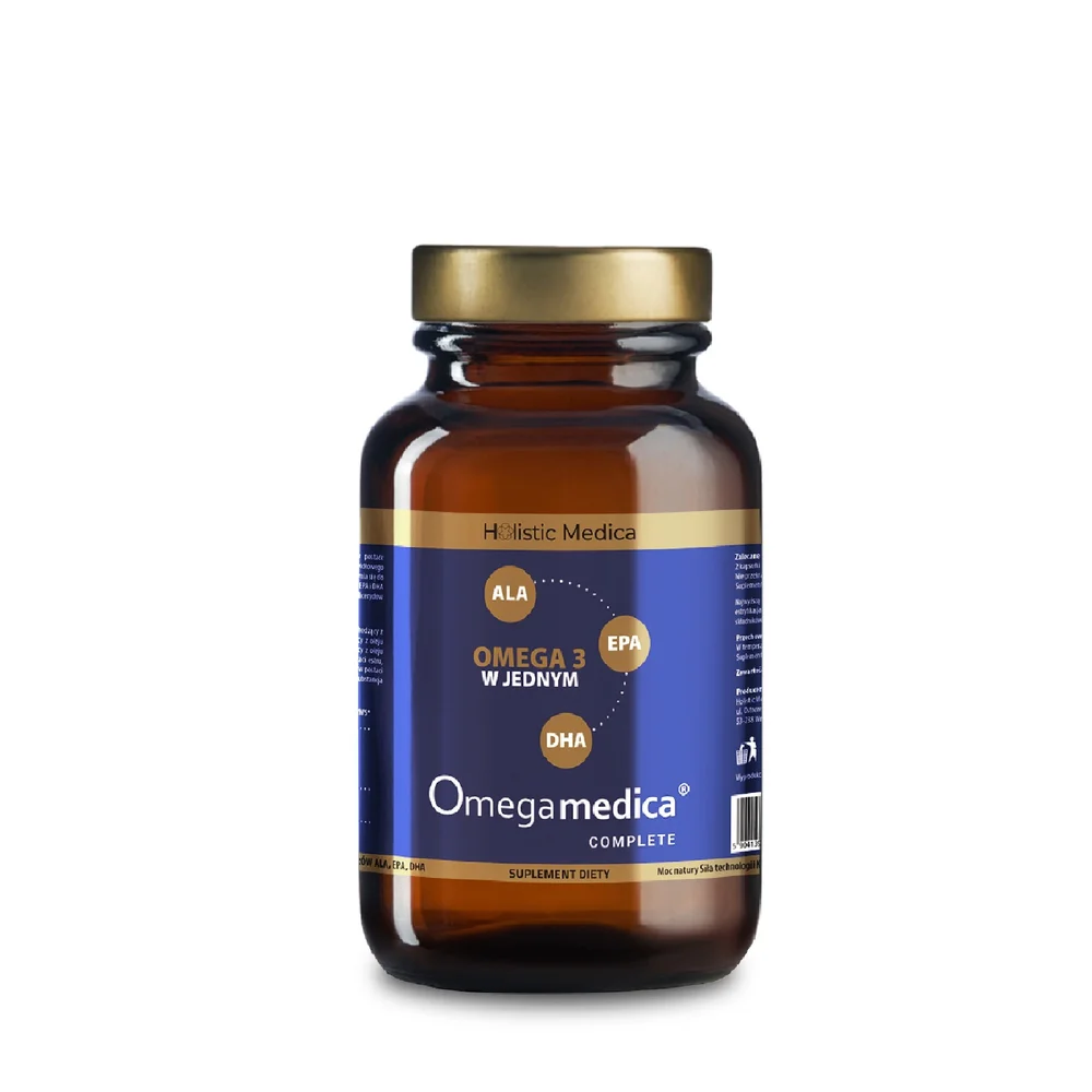 Omegamedica Complete to suplement diety w kapsułkach, który dostarcza kwasy omega 3, 6 i 9, wspomagając codzienną dietę dorosłych.