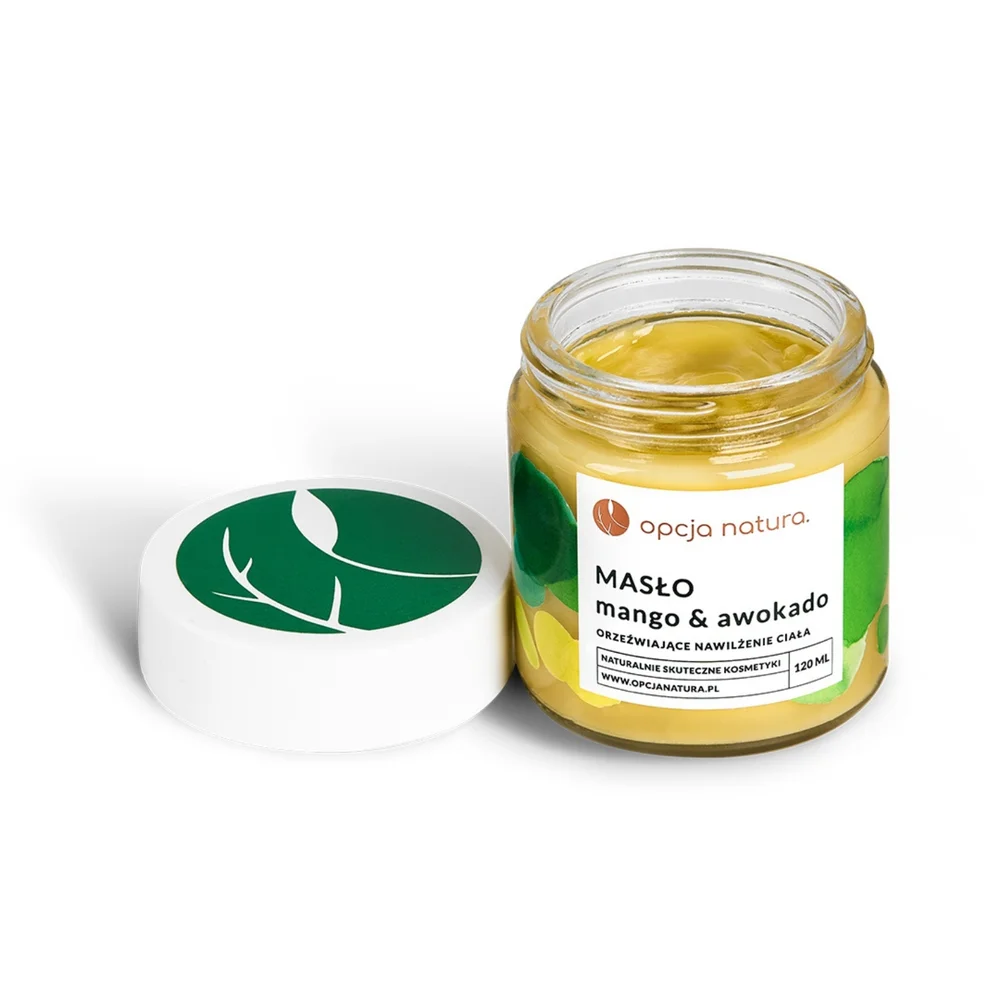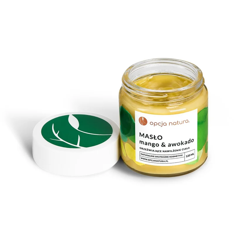 Opcja Natura to produkt kosmetyczny, orzeźwiająco nawilżające masło do ciała mango i awokado. Zawiera naturalne składniki, które mają nawilżać i odżywiać skórę. Po nałożeniu, masło szybko się wchłania, pozostawiając skórę gładką i elastyczną. Produkt jest odpowiedni do codziennego stosowania, idealnie nadaje się do pielęgnacji każdego rodzaju skóry.Składniki/Ingredients