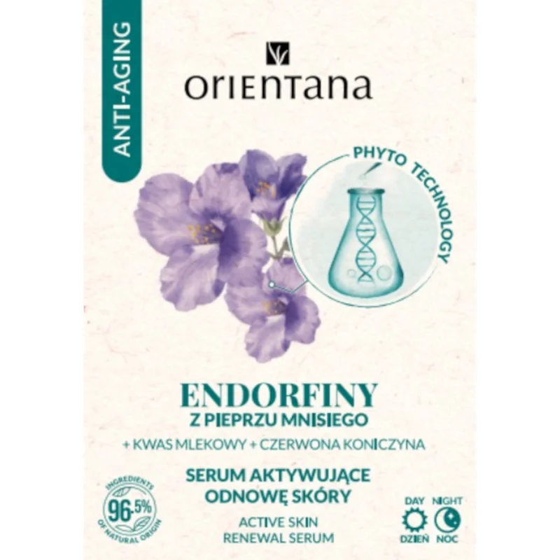 Orientana Serum aktywujące odnowę skóry endorfiny to produkt kosmetyczny opracowany dla kobiet dojrzałych, szczególnie w okresie menopauzy, których skóra utraciła jędrność, gęstość i promienność. Odpowiednie również dla skóry suchej, cienkiej i wrażliwej, wymagającej intensywnej regeneracji.