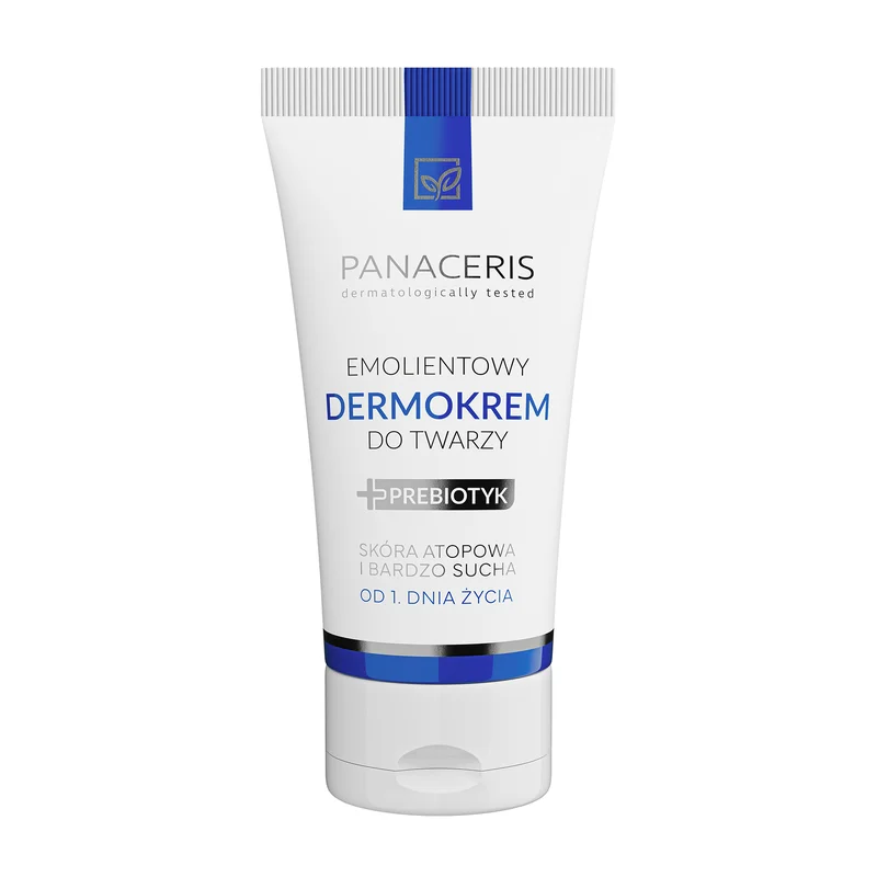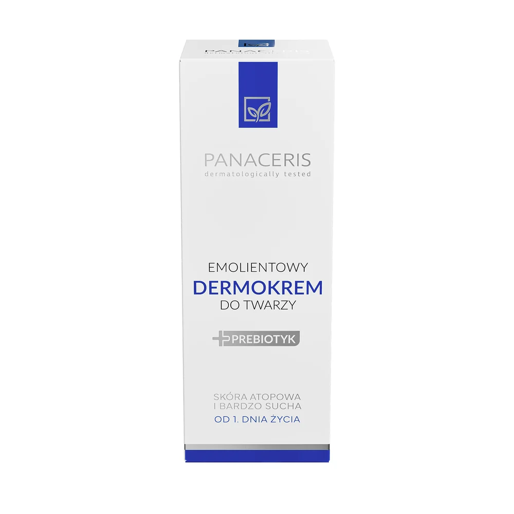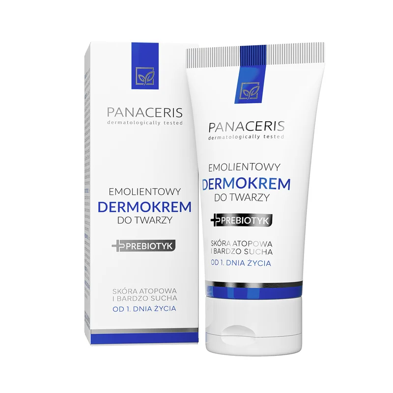 Panaceris, Emolientowy Dermokrem do twarzy to produkt kosmetyczny. Przeznaczony do pielęgnacji suchej i wrażliwej skóry, ma na celu nawilżenie oraz łagodzenie podrażnień. Formuła emolientowa wspomaga odbudowę naturalnej bariery ochronnej skóry.
