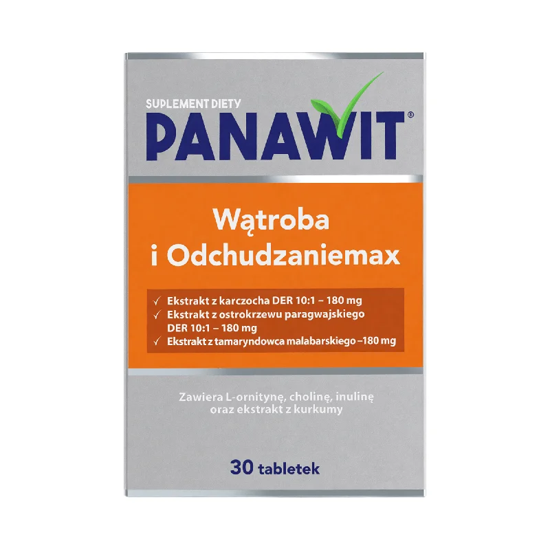 Panawit Wątroba i Odchudzaniemax to suplement diety w postaci tabletek, który w swoim składzie zawiera: karczoch, kurkumę oraz ostrokrzew paragwajski. Produkt przeznaczony jest dla osób dorosłych, które chcą uzupełnić dietę niskokaloryczną.