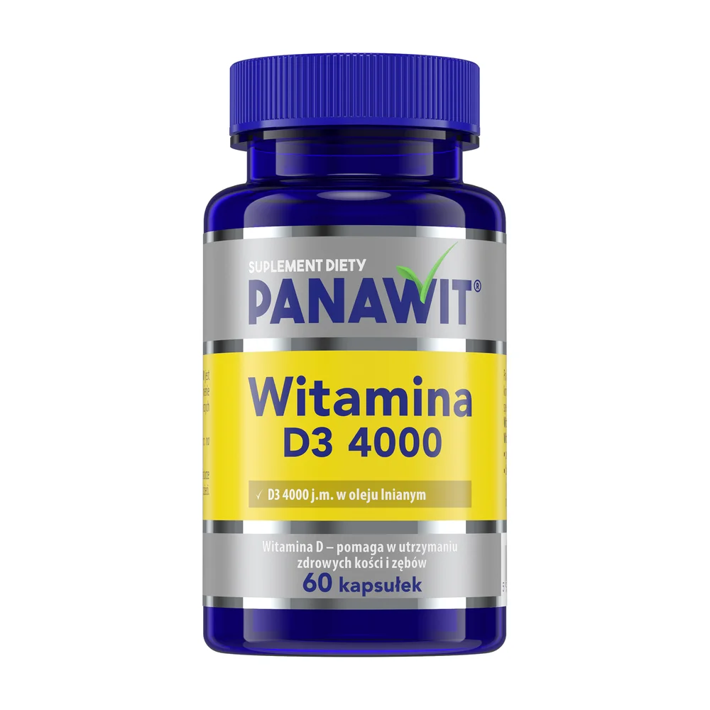 Panawit Witamina D3 4000 to suplement diety zawierający w swoim składzie witaminę D rozpuszczoną w oleju lnianym, który dzięki takiej formie charakteryzuje się dobrą przyswajalnością, wspiera prawidłowe funkcjonowanie układu odpornościowego, pomaga w utrzymaniu zdrowych kości i zębów oraz prawidłowego poziomu wapnia we krwi, a także jest szczególnie przeznaczony dla osób powyżej 75. roku życia, u których zapotrzebowanie na witaminę D jest zwiększone.
