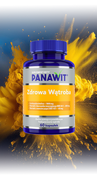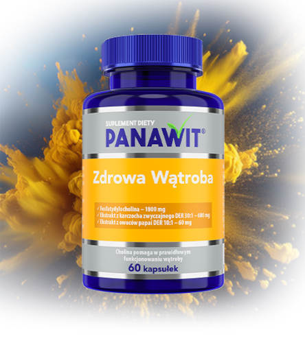 Panawit Zdrowa Wątroba - suplement diety zawierający w swoim składzie fosfatydylocholinę, witaminę E, witaminę B6 oraz ekstrakt z karczocha zwyczajnego i owoców z papai. Produkt przeznaczony dla osób dorosłych.