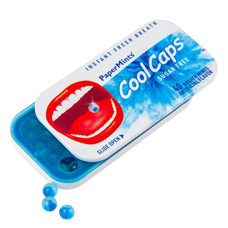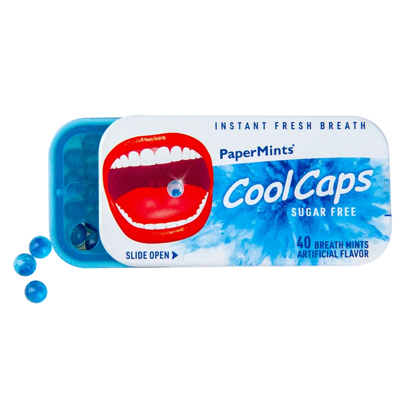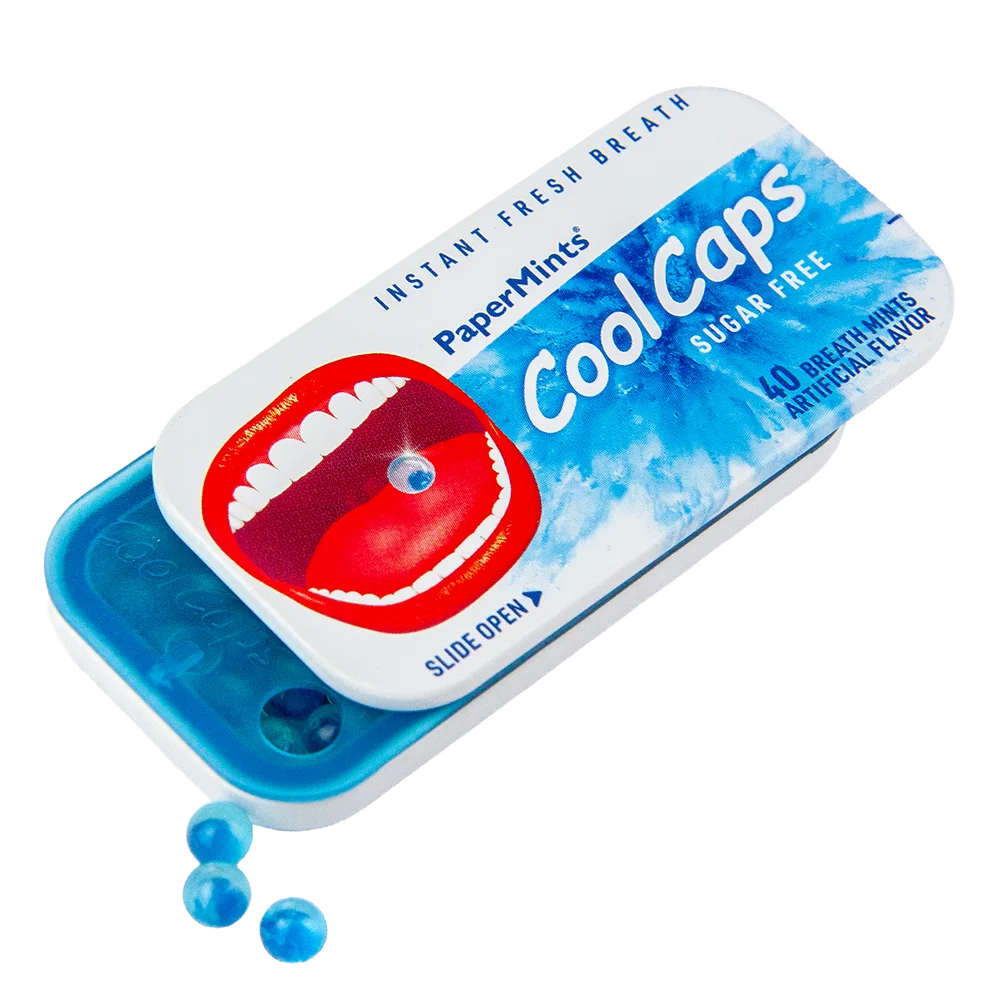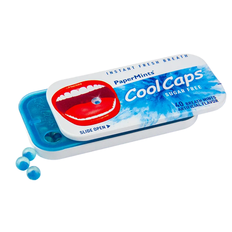 Paper Mints Cool Caps Tins to środek spożywczy w formie praktycznych kapsułek miętowych, które skutecznie odświeżają oddech. Produkt nie zawiera cukru, co czyni go odpowiednim wyborem dla osób dbających o higienę jamy ustnej i kontrolę spożycia cukru.