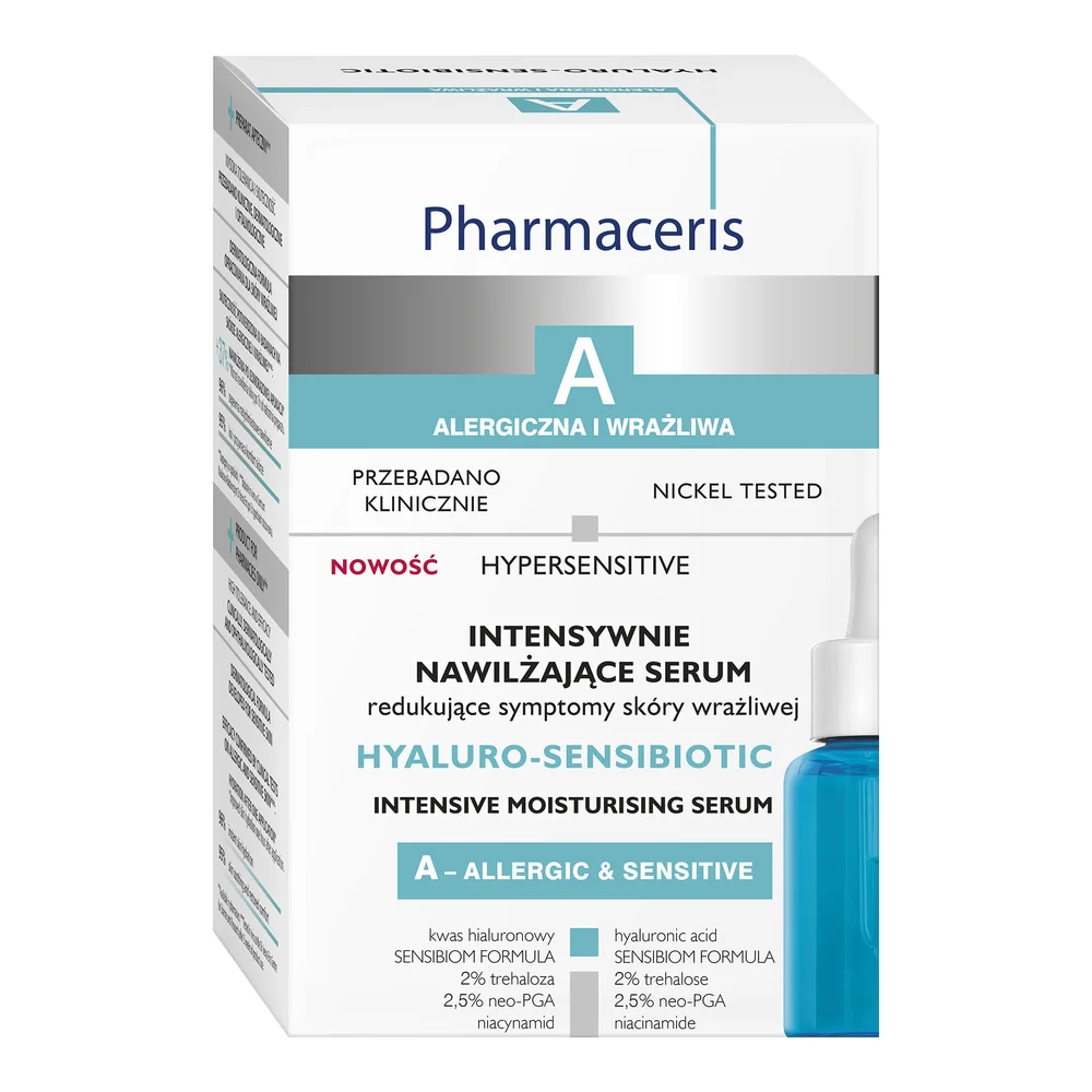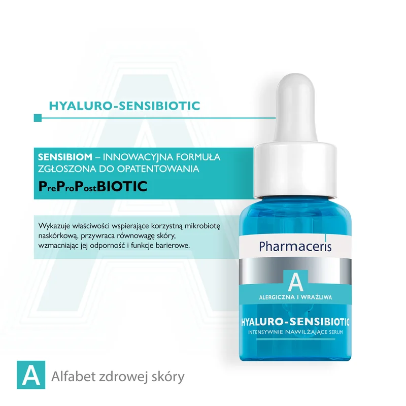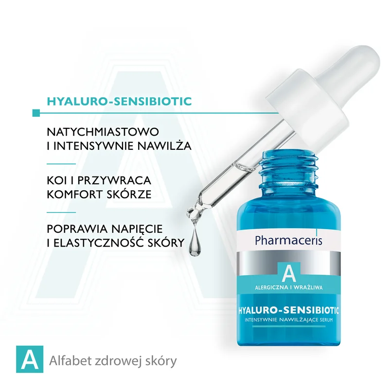 Pharmaceris A Hyaluro-Sensibiotic intensywnie nawilżające serum – to produkt kosmetyczny przeznaczony do codziennej pielęgnacji skóry nadwrażliwej, alergicznej, odwodnionej, suchej, podrażnionej i zaczerwienionej.