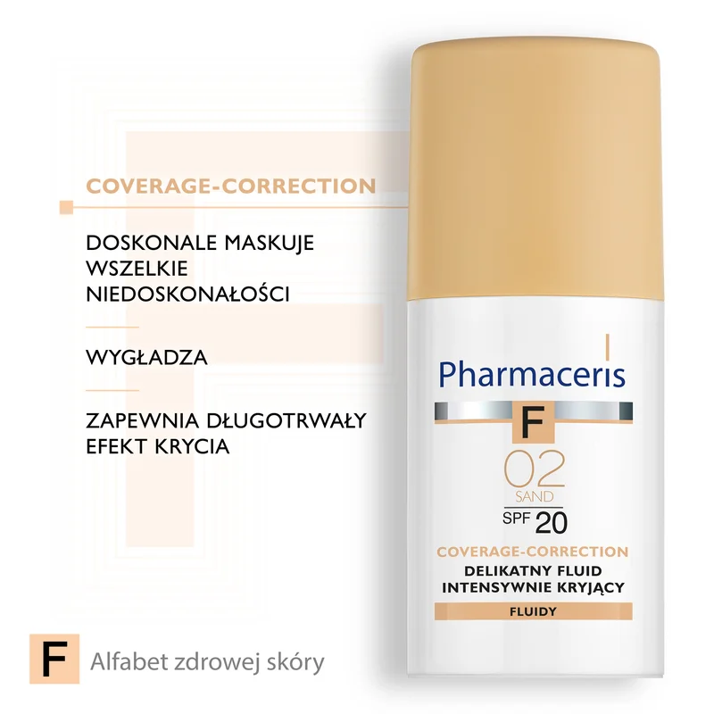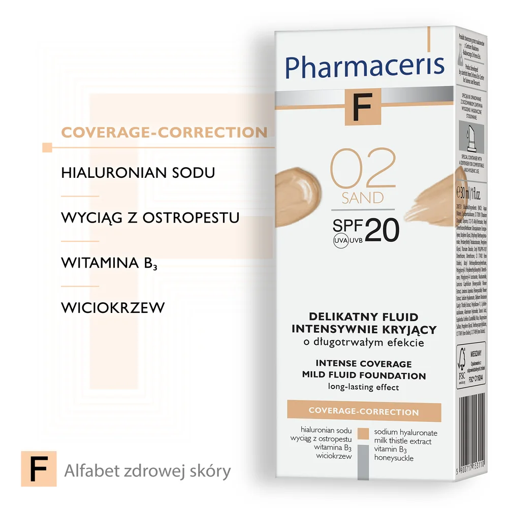 Pharmaceris F, delikatny fluid intensywnie kryjący, Sand 02, SPF 20, 30 ml