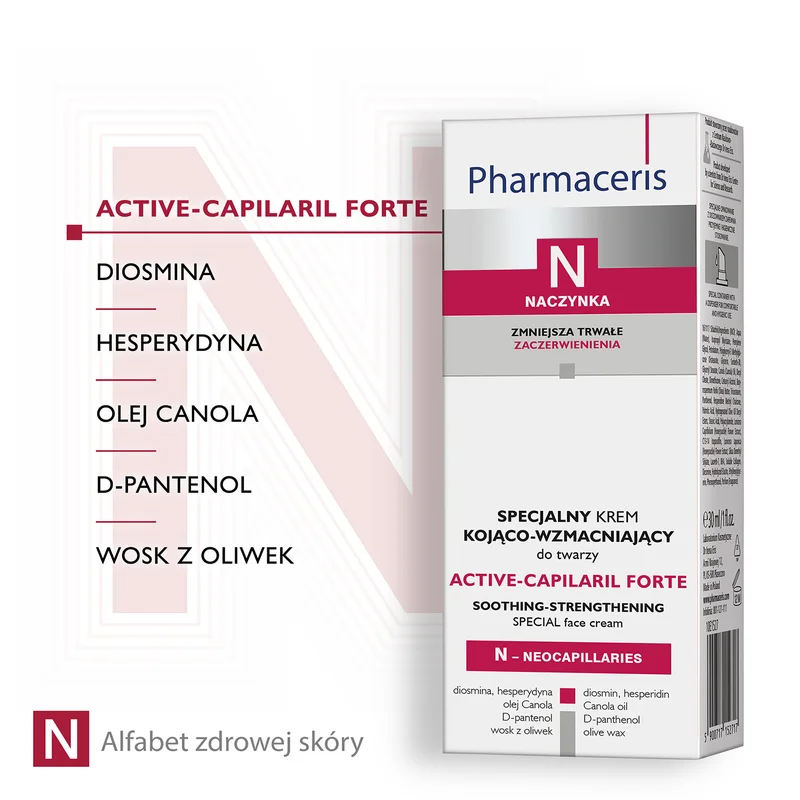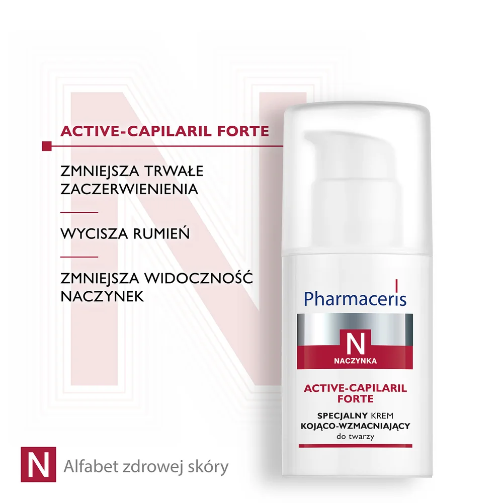 Krem do twarzy kojąco-wzmacniający Pharmaceris N Active Capilaril to specjalistyczny preparat do codziennej, intensywnej pielęgnacji skóry z utrwalonym zaczerwienieniem, z wyraźnie rozszerzonymi i popękanymi naczynkami oraz tendencją do rumienia.Stosowanie produktu