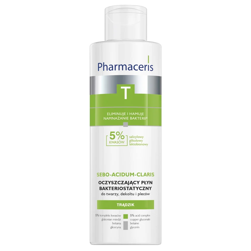 Pharmaceris T, Sebo-Acidum-Claris, oczyszczający płyn bakteriostatyczny do twarzy, dekoltu i pleców, 190 ml