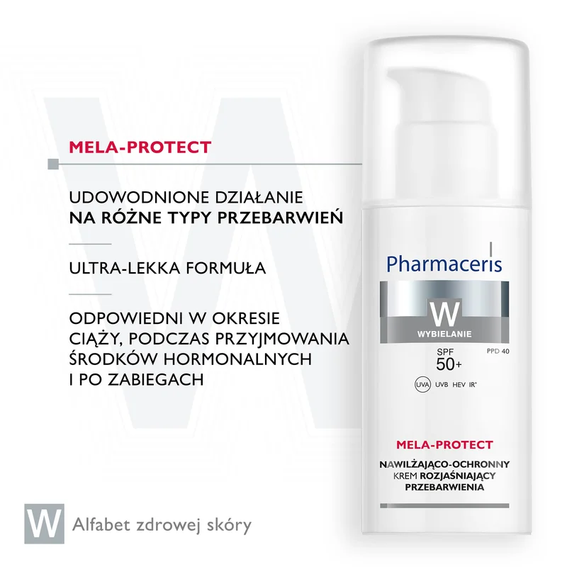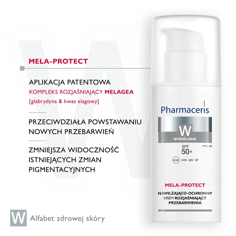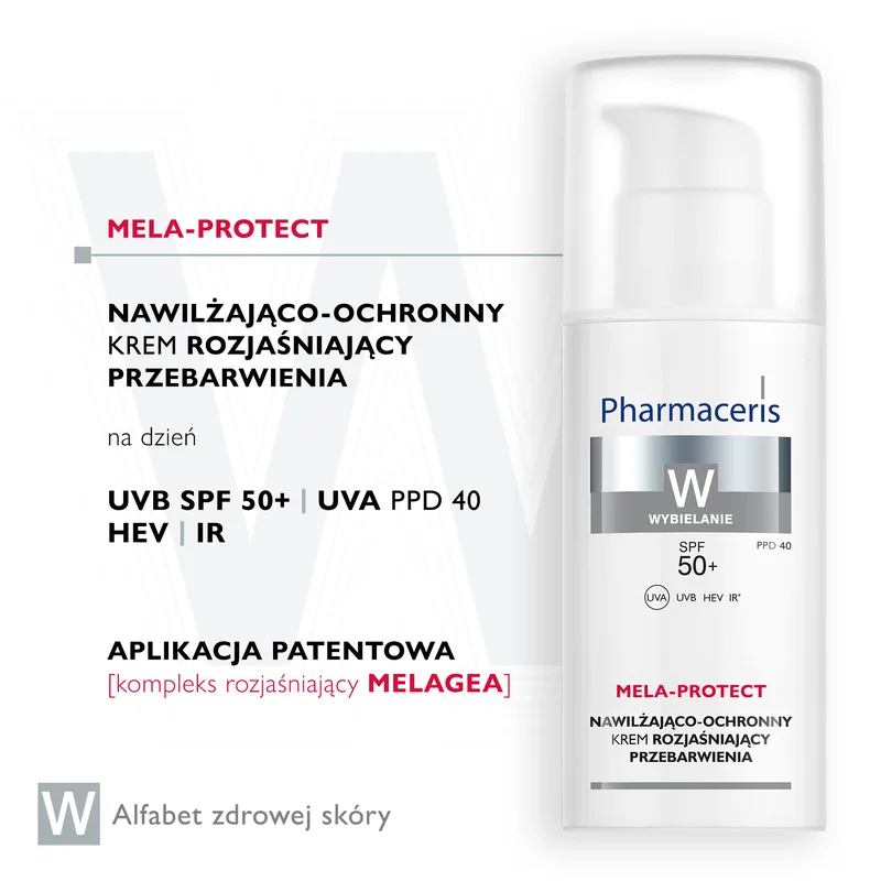 Pharmaceris W Mela-Protect nawilżająco-ochronny krem rozjaśniający przebarwienia SPF 50+ – to produkt kosmetyczny przeznaczony do codziennej, porannej pielęgnacji skóry szarej, matowej, z przebarwieniami.