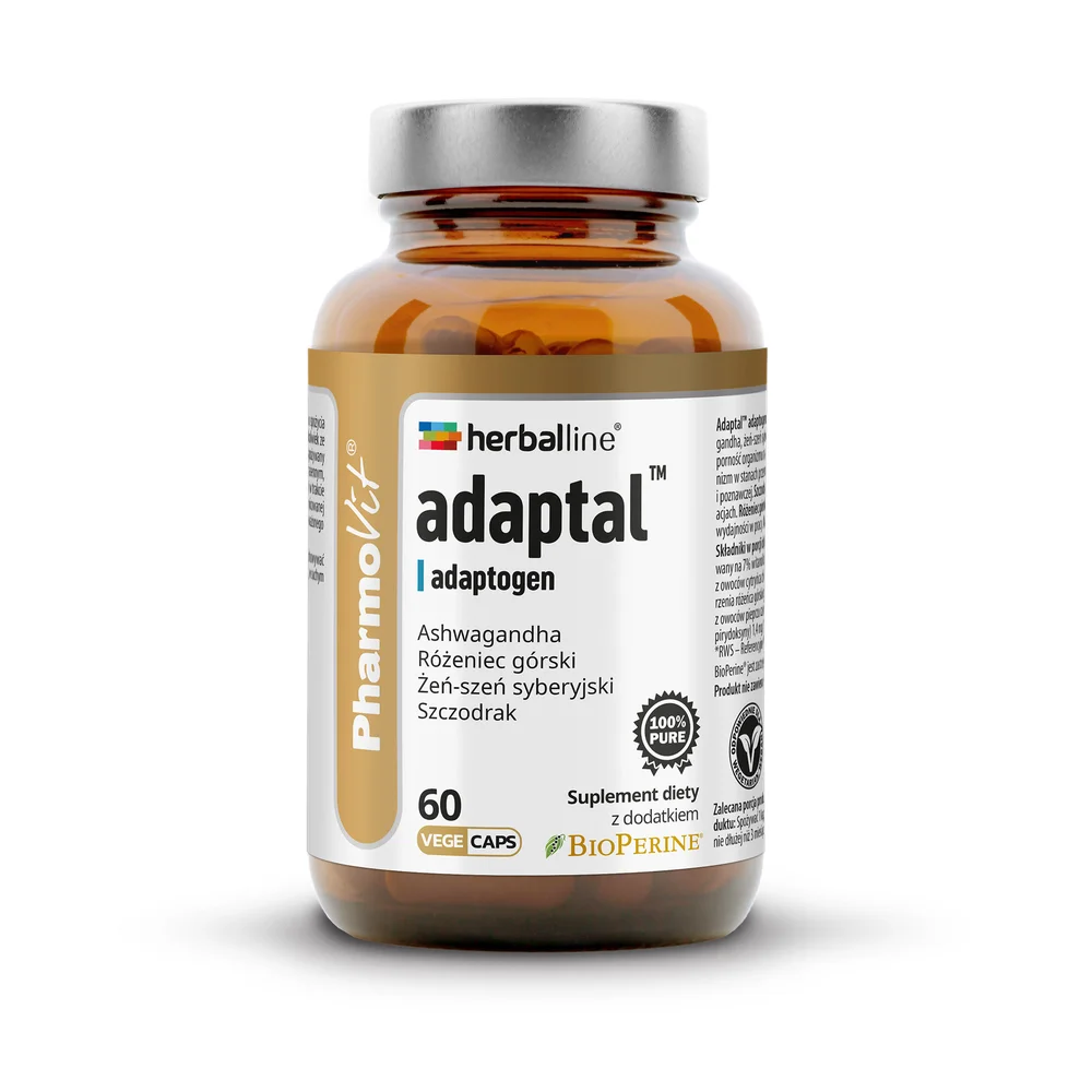 PharmoVit Herballine Adaptal to suplement diety zawierający starannie dobrane składniki, które wspierają organizm w adaptacji do stresu oraz codziennych wyzwań. W skład produktu wchodzą naturalne ekstrakty, które mogą wspierać odporność na stres oraz sprzyjać równowadze organizmu. Zalecany jest dla osób poszukujących wsparcia w radzeniu sobie z wymaganiami życia codziennego.Składniki