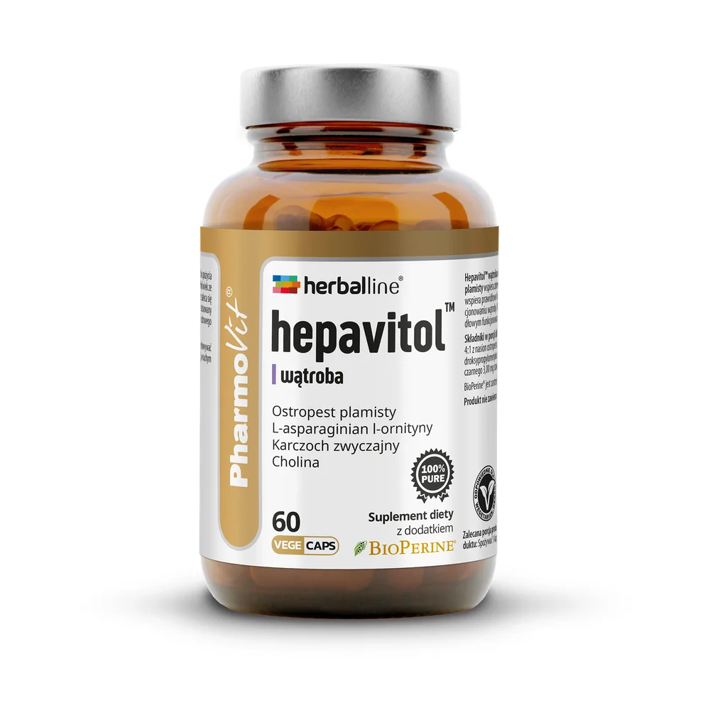 PharmoVit Hepavitol wątroba - suplement diety zawierający mieszankę wysoko skoncentrowanych ekstraktów i witamin zamkniętych w roślinnej kapsułce Vcaps®. Produkt przeznaczony dla osób dorosłych.