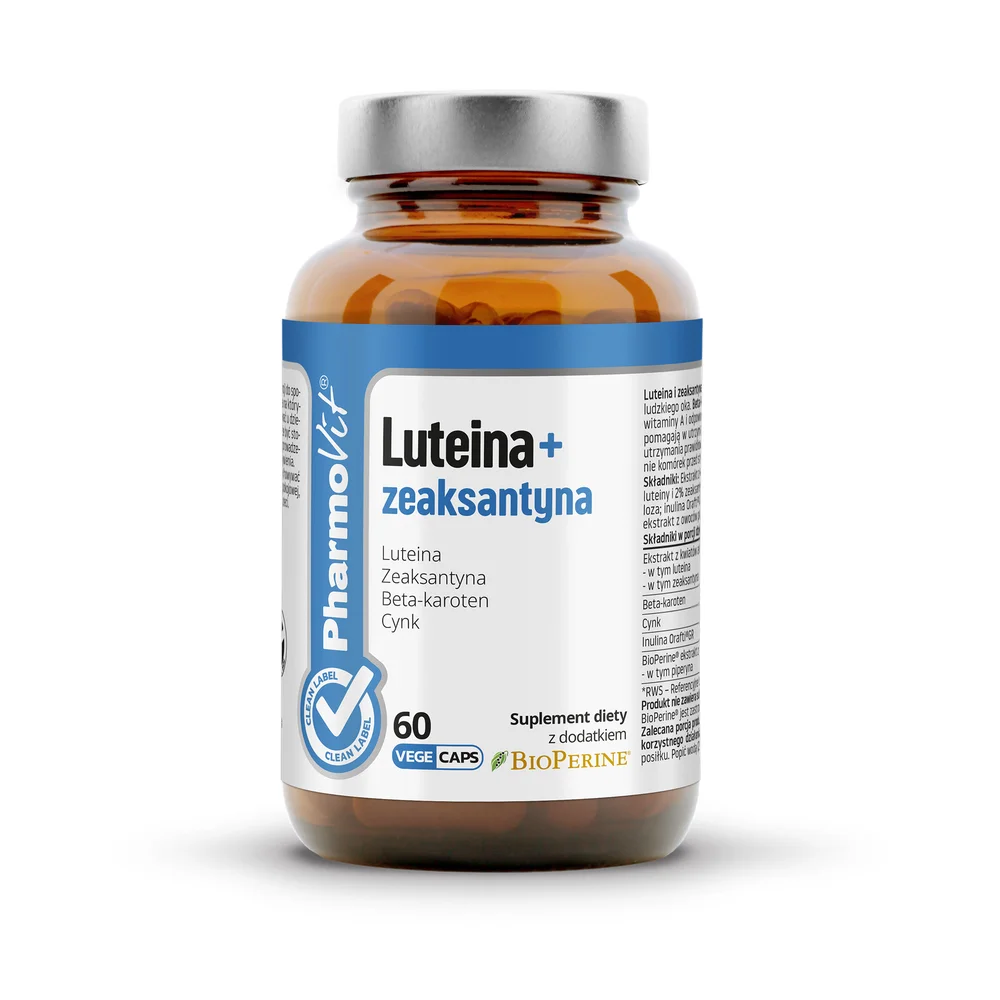 Pharmovit, Luteina + zeaksantyna to suplement diety, w którego skład wchodzą luteina i zeaksantyna. Składniki suplementu wspierają ochronę komórek przed stresem oksydacyjnym oraz pomagają w utrzymaniu prawidłowej funkcji wzroku. Produkt zawiera naturalne barwniki, które mogą być korzystne dla organizmu. Produkt odpowiedni dla osób dorosłych.