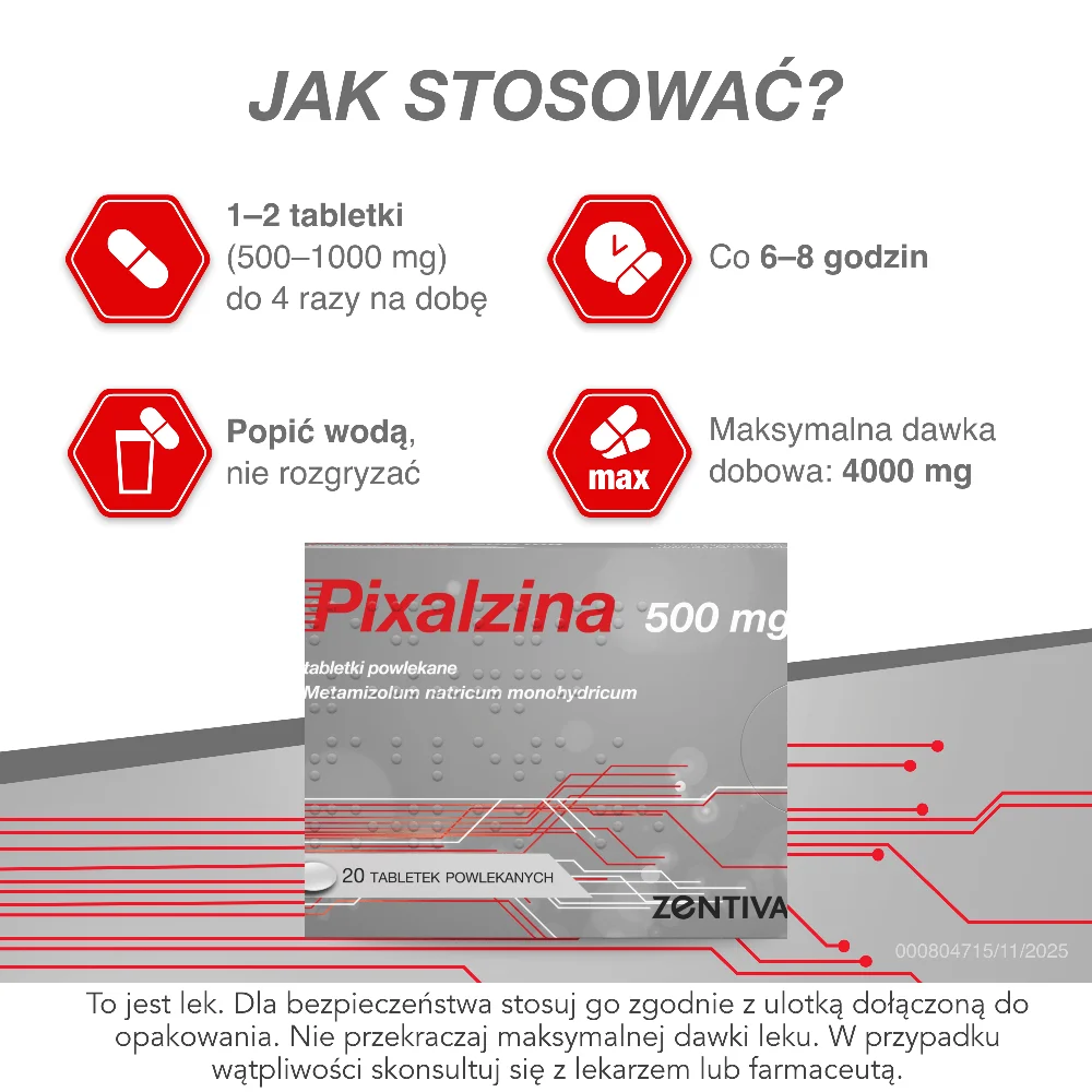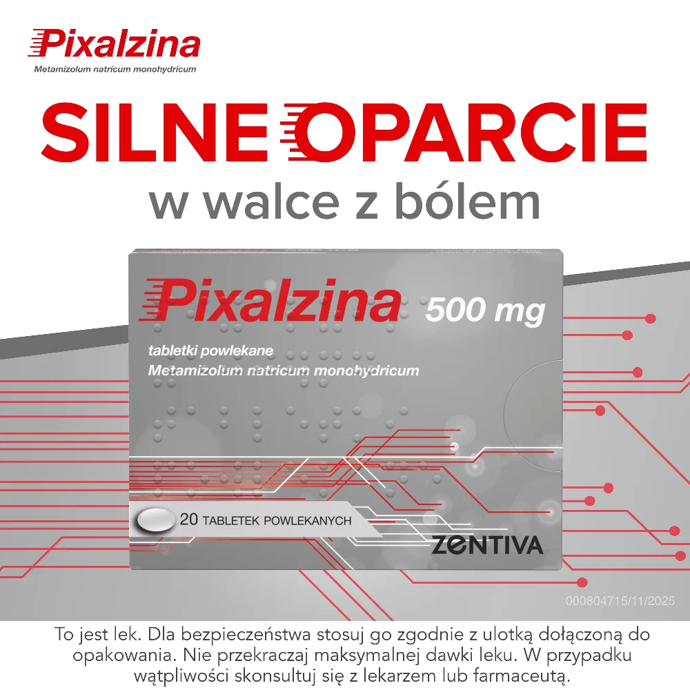 Pixalzina 500 mg to produkt leczniczy zawierający metamizol sodowy jednowodny, który należy do grupy leków zwanych pirazolonami.