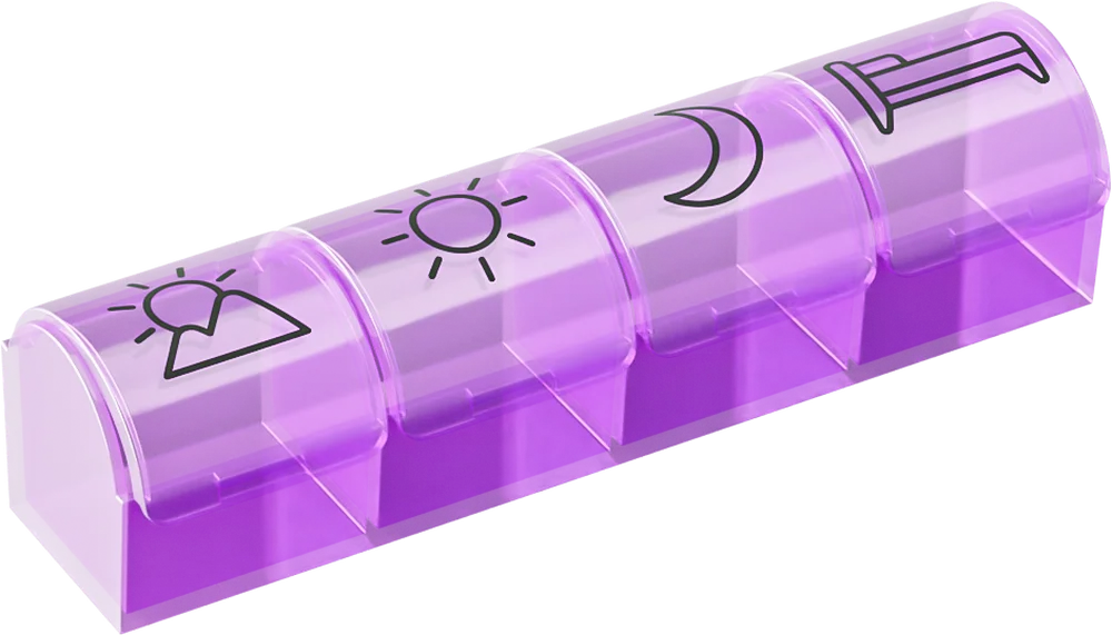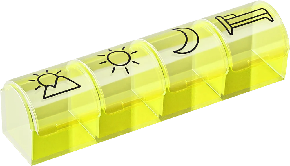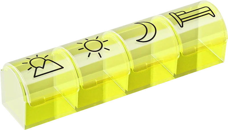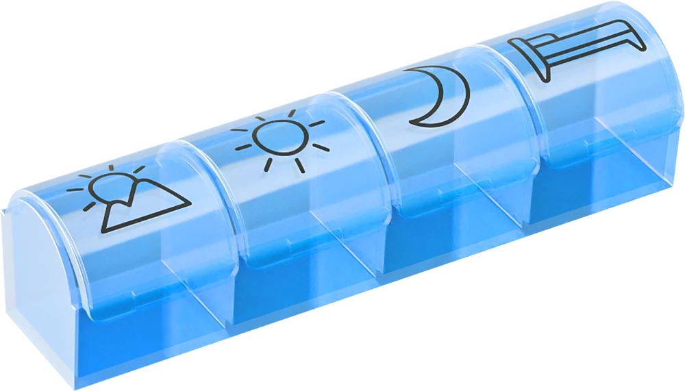 Po wyjęciu pojemnika z pudełka umieść poszczególne dawki leku w odpowiednich komorach zgodnie z zaleceniami lekarza. Pod koniec dnia upewnij się, że zażyto wszystkie lekarstwa przewidziane na ten dzień oraz że każda przegródka jest pusta.