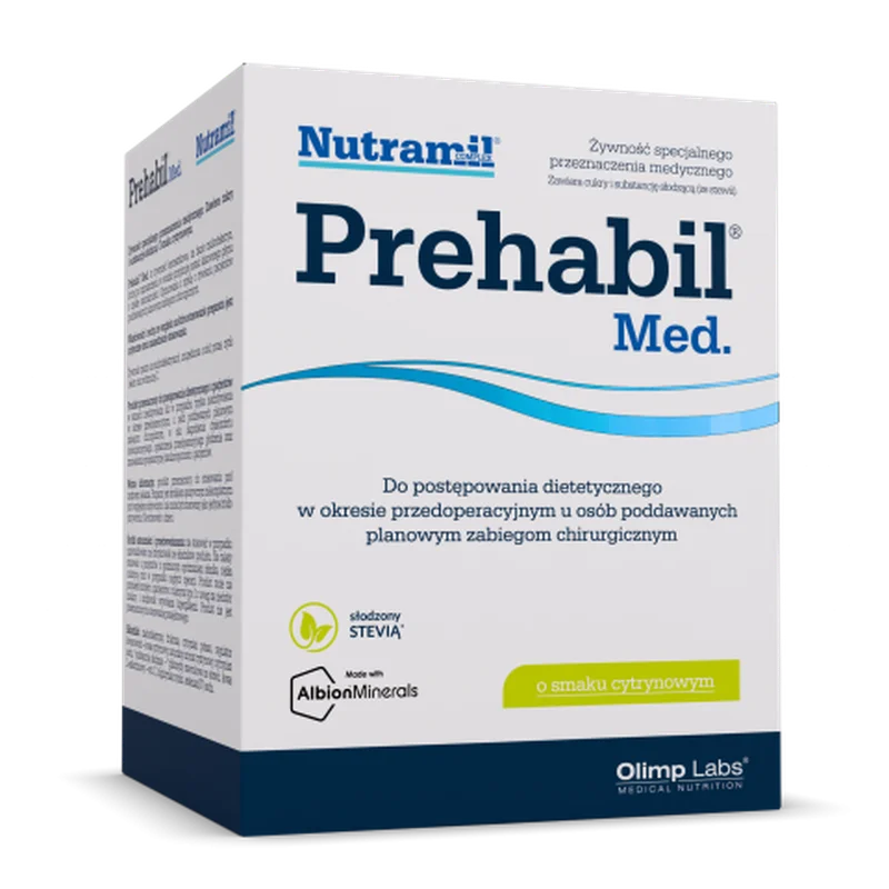 Olimp Nutramil PreHabil Med jest przeznaczony do stosowania pod nadzorem lekarza u dorosłych pacjentów, którzy znajdują się w stanie niedożywienia lub są narażeni na niedożywienie przed zabiegiem chirurgicznym, w celu złagodzenia dyskomfortu okołoperacyjnego, ograniczenia przedoperacyjnego głodzenia oraz zmniejszenia pooperacyjnej insulinooporności.