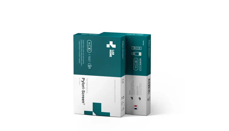 LabHome Pylori Screen to domowy test do diagnostyki zakażenia bakterią Helicobacter pylori powodującej wrzody żołądka – wykrywanie przeciwciał w krwi pełnej.