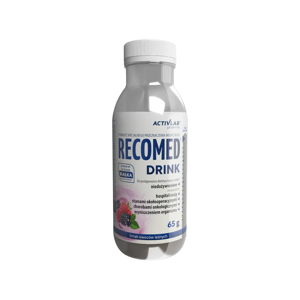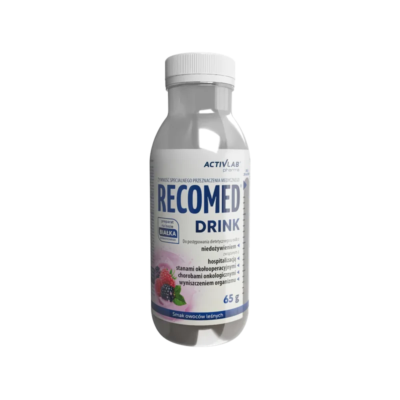 RecoMed Drink owoce leśne to środek spożywczy specjalnego przeznaczenia medycznego. Produkt zawiera mieszankę składników, w tym ekstrakty owoców leśnych. Forma płynna umożliwia łatwe spożycie. Przeznaczony jest dla osób wymagających szczególnej diety. Produkt należy stosować zgodnie z zaleceniami specjalisty. Należy przechowywać w chłodnym i suchym miejscu, z daleko od dzieci.Ostrzeżenia dotyczące bezpieczeństwa