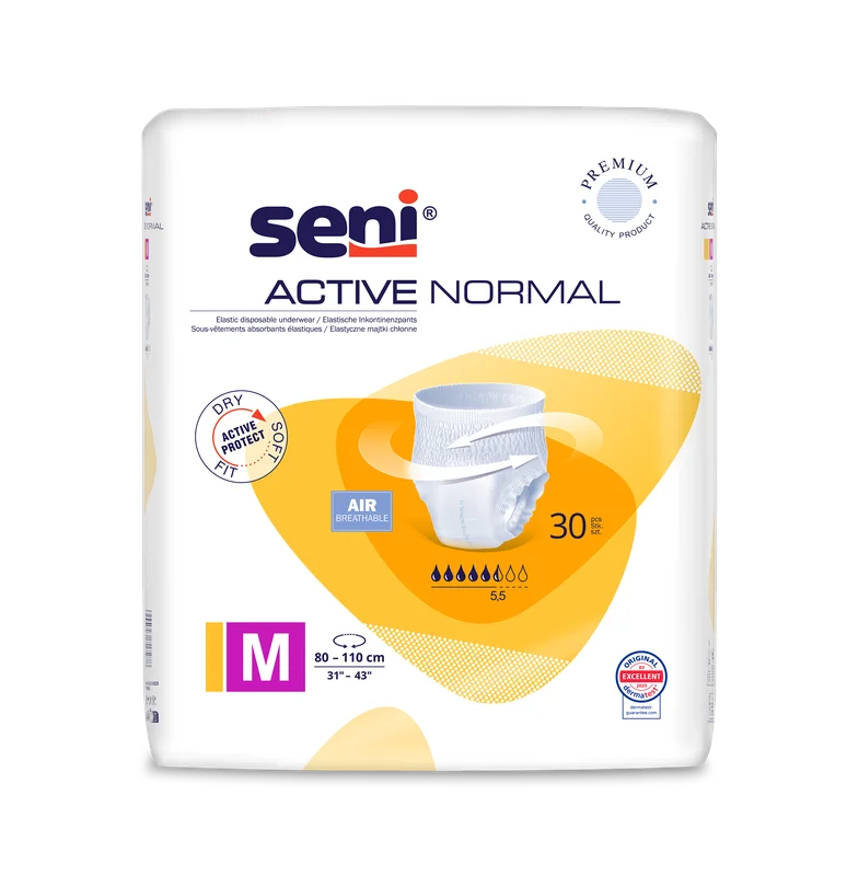 Seni Active Normal Medium Majtki chłonne stworzone zostały z myślą o osobach aktywnych ze średnim nietrzymaniem moczu.Stosowanie produktu