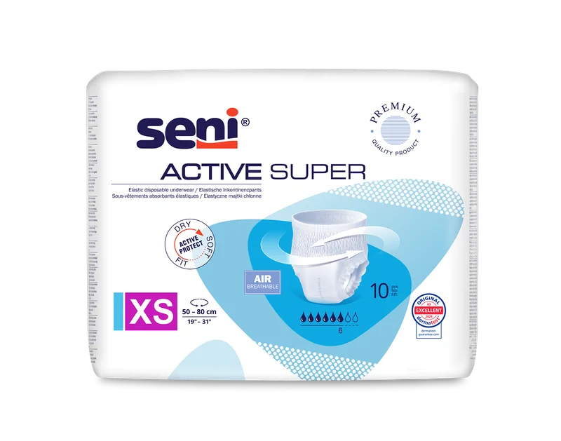 Seni Active Super, pieluchomajtki, XS, 10 sztuk