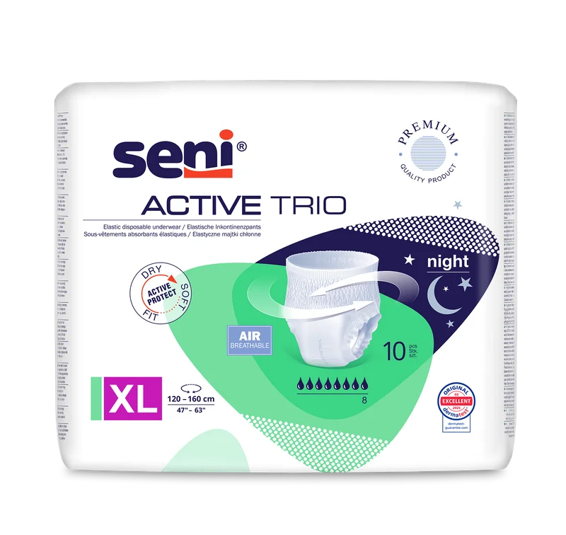 Seni Active Trio XL elastyczne majtki chłonne – to wyrób medyczny przeznaczony dla osób zmagających się z nietrzymaniem moczu w stopniu ciężkim.