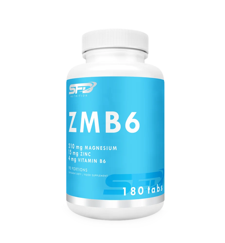 SFD ZMB6 to suplement diety, którego składniki wspierają równowagę hormonalną oraz przyczyniają się do regeneracji organizmu w trakcie snu. Produkt zawiera złożoną formułę, w tym magnez, cynk oraz witaminy z grupy B, co pozwala na dostarczenie niezbędnych mikroelementów. Skład suplementu został opracowany z myślą o osobach dorosłych, aktywnych fizycznie, chcących wspomóc swoje codzienne potrzeby organizmu.