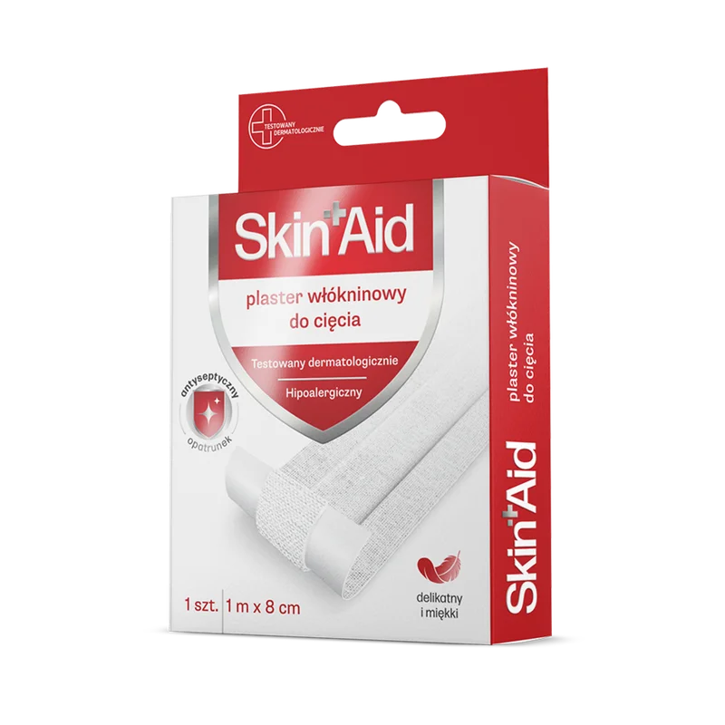 Skin Aid, plaster włókninowy, 1 m x 8 cm, 1 sztuka to wyrób medyczny. Przeznaczony jest do opatrywania ran oraz zapewnienia ochrony przed zewnętrznymi czynnikami. Plaster wykonany jest z włókniny, co zapewnia dobrą przepuszczalność powietrza. Jest elastyczny, co umożliwia swobodne dopasowanie do kształtu ciała. Plaster jest samoprzylepny, co ułatwia aplikację i utrzymanie go na miejscu. Może być stosowany na skórze zdrowej oraz poddanej mikrourazom.Przeznaczenie produktu