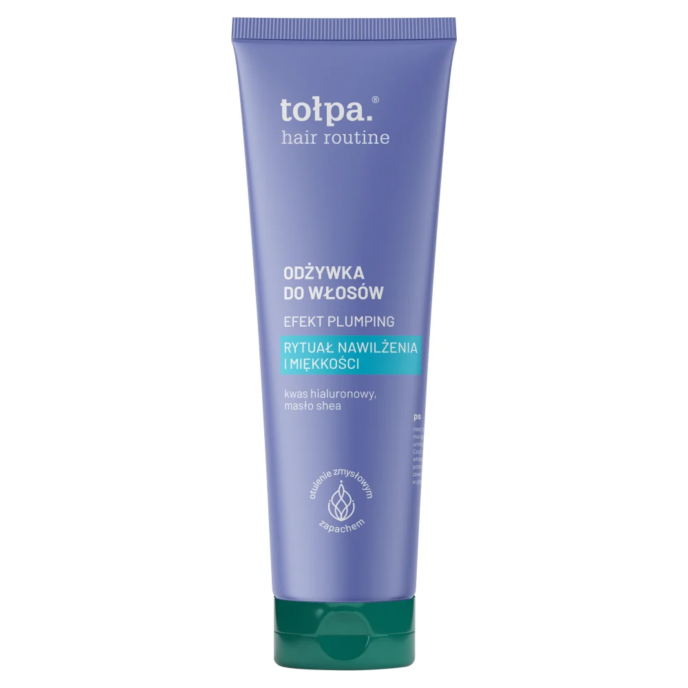 Tołpa Hair Routine, odżywka nawilżająca Plumping, to produkt kosmetyczny, który nawilża i regeneruje włosy. Dzięki swojej formule ma za zadanie zwiększać objętość oraz poprawiać kondycję kosmyków. Produkt zawiera składniki aktywne, które wspierają nawilżenie, elastyczność i miękkość włosów. Odżywka jest przeznaczona do codziennej pielęgnacji, a jej stosowanie ma na celu ułatwienie rozczesywania oraz redukcję puszenia.Składniki/Ingredients