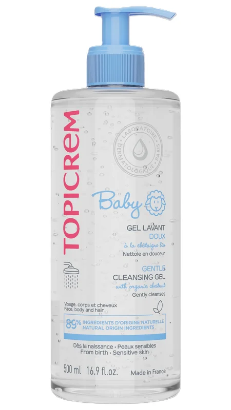 Topicrem, Baby Gentle Cleansing Gel, delikatny żel do mycia ciała i włosów, 500 ml