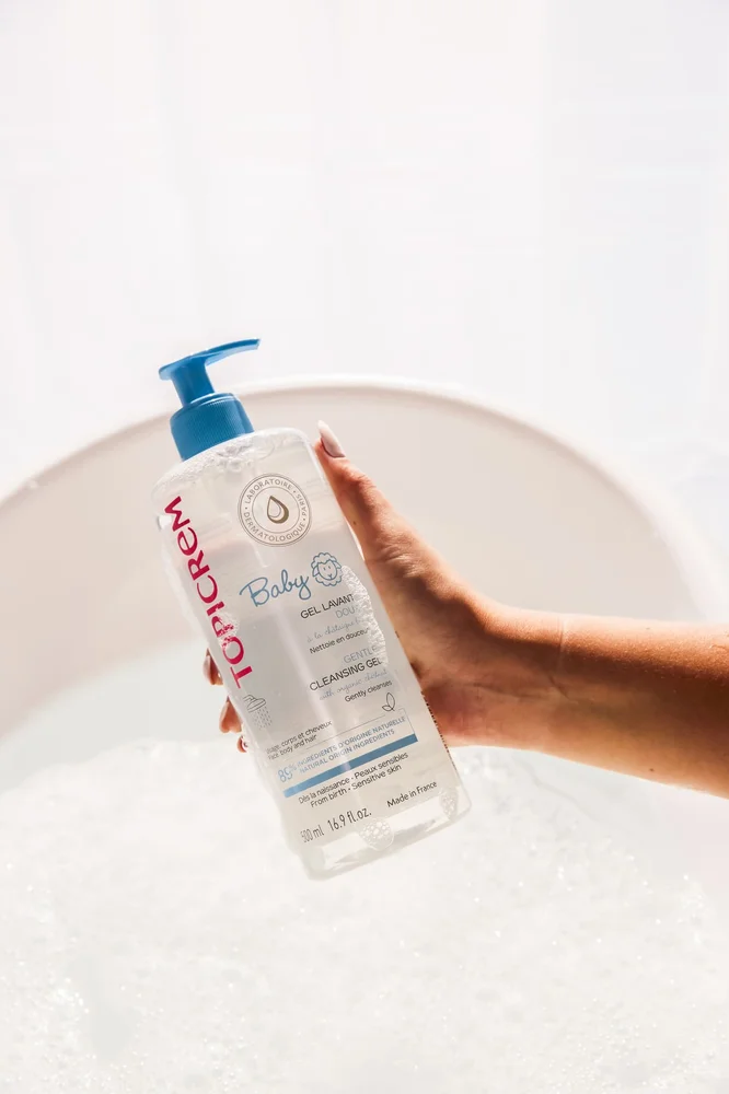 Topicrem, Baby Gentle Cleansing Gel to produkt kosmetyczny, stworzony z myślą o delikatnym myciu ciała i włosów dzieci. Formuła żelu jest hipoalergiczna i zawiera składniki o właściwościach nawilżających. Nie zawiera parabenów, a jego pH jest neutralne dla skóry. Produkt jest przystosowany do codziennego użytku, zapewniając delikatną pielęgnację oraz komfort podczas kąpieli.Składniki/Ingredients