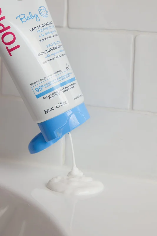 Topicrem, Baby Protective Moisturizing Milk to produkt kosmetyczny, który nawilża i chroni wrażliwą skórę dzieci. Formuła mleczka została opracowana z myślą o delikatnej skórze maluchów, zapewniając jej optymalne nawilżenie oraz ochronę przed szkodliwymi czynnikami środowiskowymi. Mleczko jest łatwe w aplikacji, dobrze się wchłania i nie pozostawia tłustego filmu, co czyni je odpowiednim dla codziennego użytku.Składniki/Ingredients