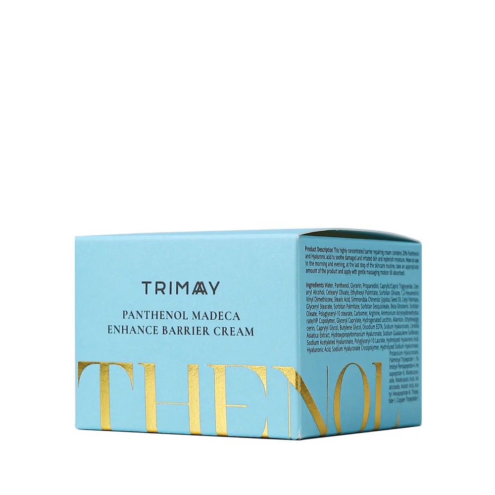 Trimay, krem wzmacniający barierę skóry z Pantenolem i Madecassoide, to produkt kosmetyczny, który wspiera odbudowę i wzmocnienie naturalnej bariery ochronnej skóry. Pantenol działa nawilżająco i łagodząco, a Madecassoide wspomaga regenerację i poprawia kondycję naskórka. Krem ma na celu zachowanie odpowiedniego poziomu nawilżenia, co przyczynia się do zdrowego wyglądu skóry. Produkt przeznaczony jest do codziennego stosowania.Składniki/Ingredients