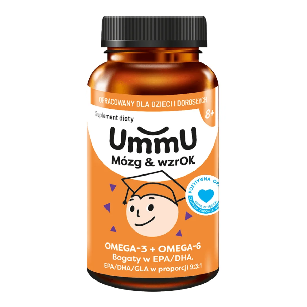 UmmU Mózg&Wzrok to suplement diety w kapsułkach, którego składniki wspierają prawidłowy rozwój funkcji poznawczych i wzroku u dorosłych dzieci powyżej 8 lat.