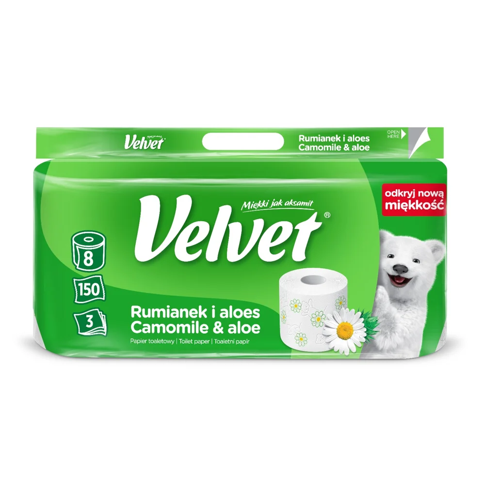 Velvet Care, papier toaletowy, Camomile&Aloe, 8 sztuk