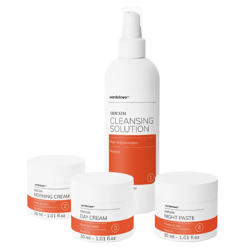 Verdelove Odexim płyn oczyszczający, 150 ml + krem na rano, 30 ml + krem na dzień, 30 ml + pasta na noc, 30 ml [ZESTAW]