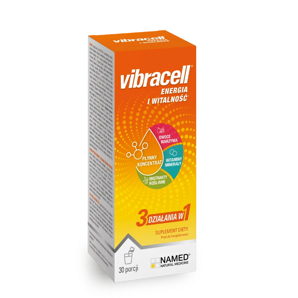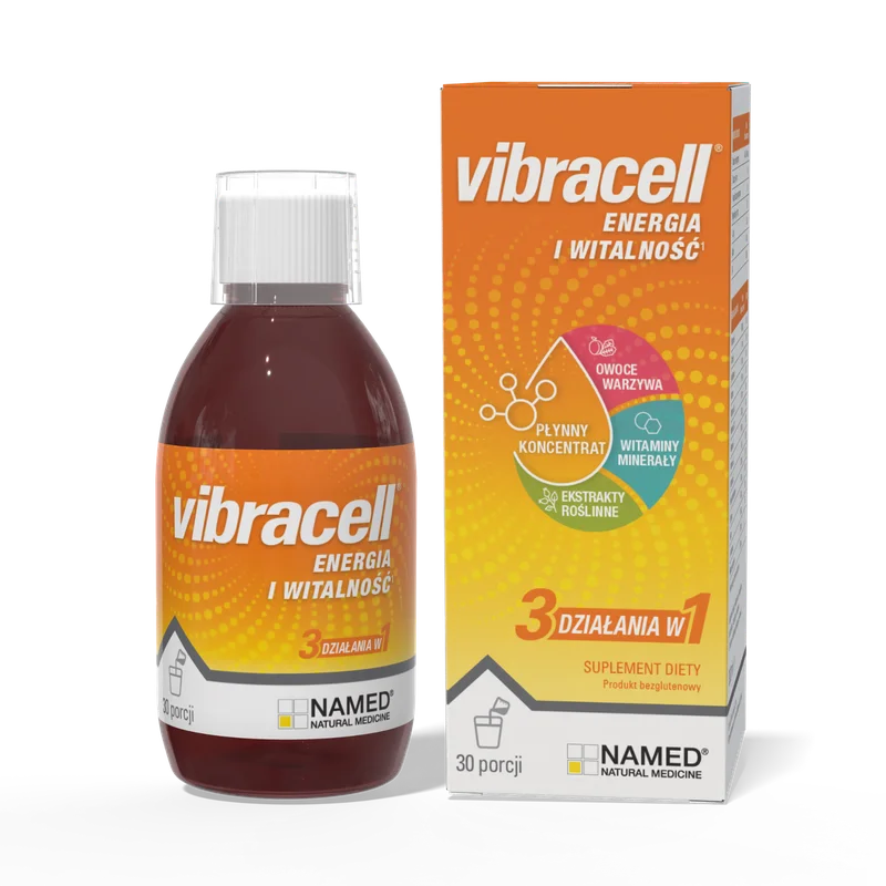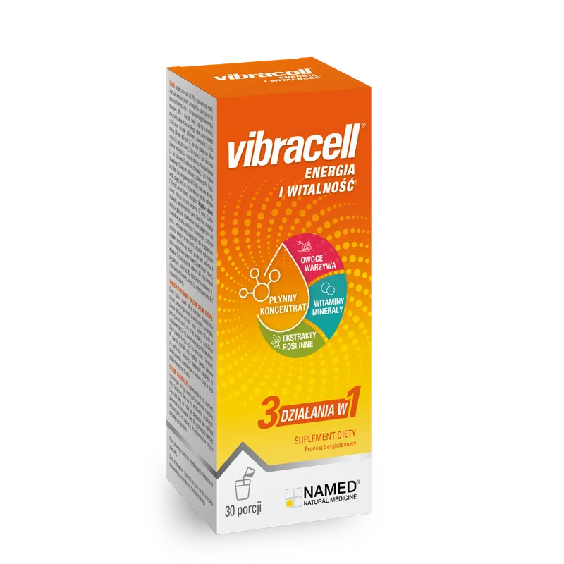 Vibracell to koncentrat przygotowany na bazie ekologicznych owoców i warzyw, których sok otrzymuje się poprzez tłoczenie na zimno. Uzupełnienie składu o wybrane ekstrakty roślinne, L-karnitynę, selen i mleczko pszczele sprawia, że preparat może stanowić codzienne wsparcie dla naturalnych procesów trawienia. Zastosowana laktofermentacja części warzyw zwiększa wartość odżywczą produktu i intensyfikuje jego działanie. Suplement jest przeznaczony dla osób dorosłych oraz dzieci po ukończeniu 6 lat.