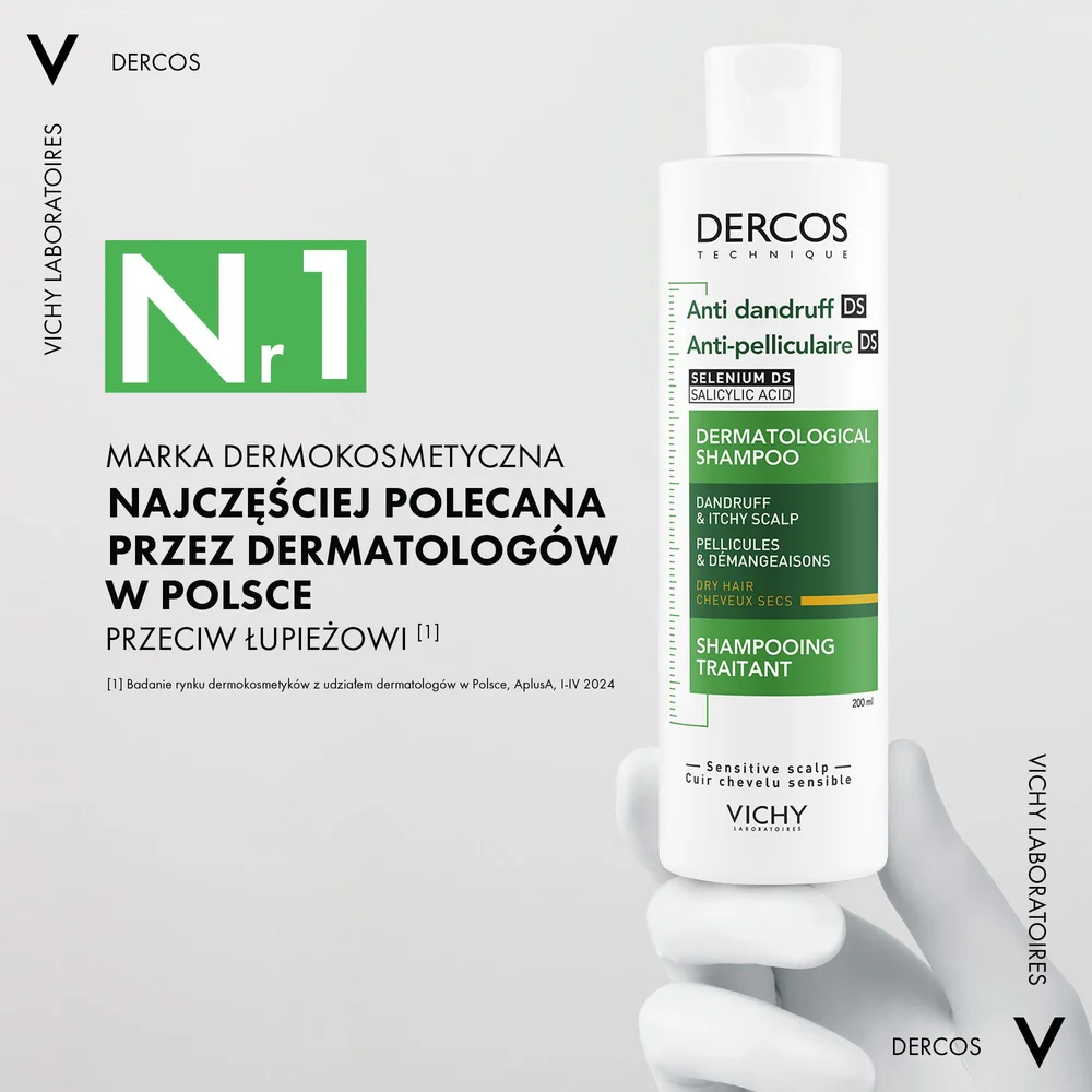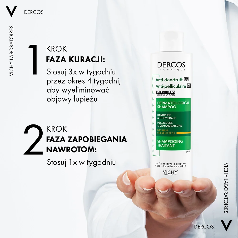 Vichy Dercos, szampon przeciwłupieżowy, włosy suche to produkt kosmetyczny do stosowania w przypadku łupieżu i swędzącej skóry głowy.