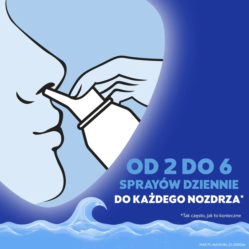 Powyżej 3 roku życia. Stosować 2-6 aplikacji dziennie do każdego otworu nosowego, w zależności od potrzeby. 1. Delikatnie wprowadź końcówkę do otworu nosowego. 2. Naciśnij głowicę sprayu. 3. Poczekaj, aż nadmiar roztworu wypłynie, usuwając wydzielinę, a następnie wydmuchaj nos. 4. Powtórz czynność w drugim otworze nosowym. 5. Umyj końcówkę wodą i dokładnie osusz. 6. Załóż ochronną nasadkę na aplikator, aby zabezpieczyć go do kolejnego użycia.Ostrzeżenia i środki ostrożności