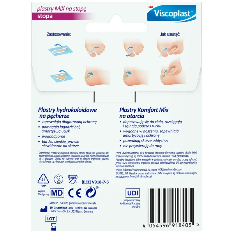 Viscoplast, Plastry MIX na stopę to wyrób medyczny przeznaczony do stosowania przeciw powstawaniu pęcherzy, otarć, haluksów i odcisków.