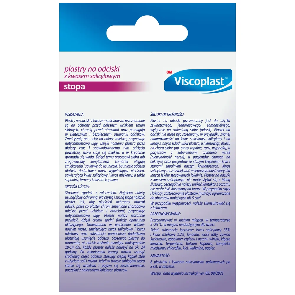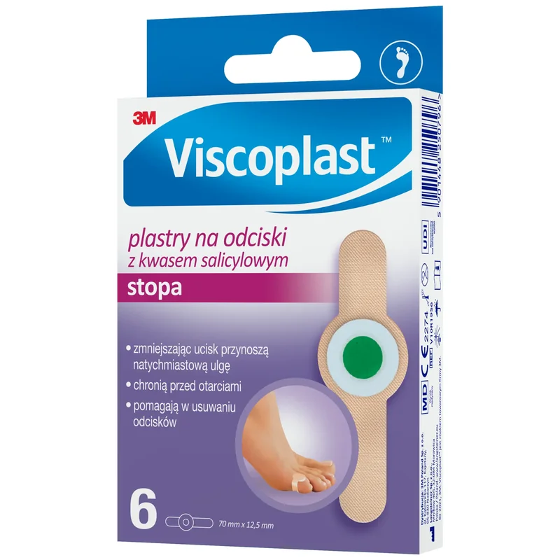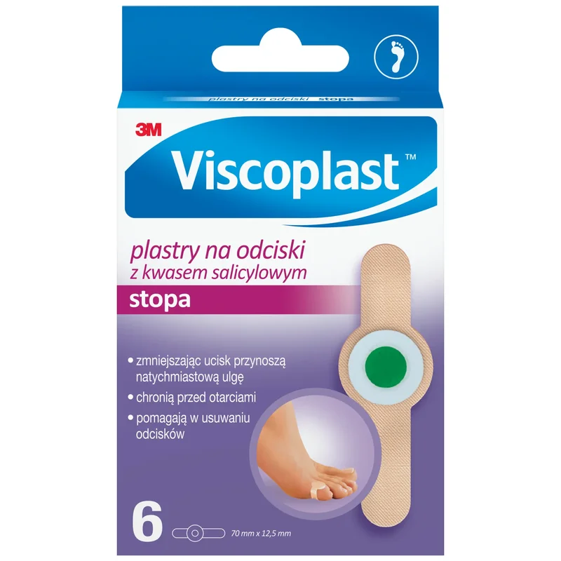 Viscoplast, plastry na odciski z kwasem salicylowym to wyrób medyczny opracowany z myślą o ochronie stóp przed odciskami i otarciami, a także pomagający w ich usuwaniu.