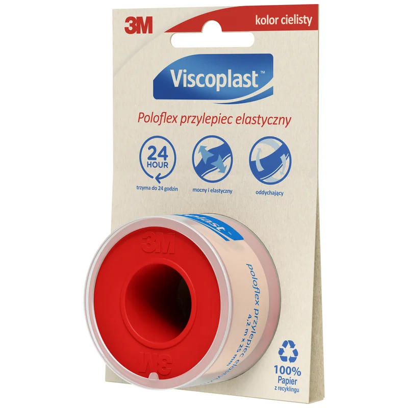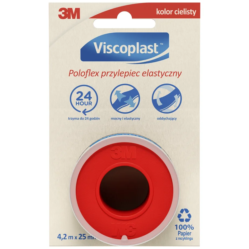 Viscoplast Poloflex Przylepiec elastyczny 4,2 m x 25,0 mm to produkt przeznaczony do mocowania i zabezpieczania gazy i opatrunków.Stosowanie produktu
