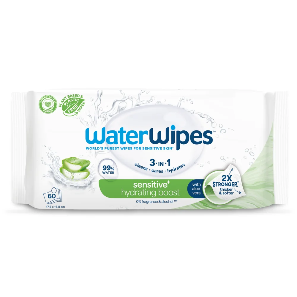 WaterWipes Hydrating Clean, Chusteczki nawilżane dla dzieci z ekstraktem z aloesu, 60 sztuk