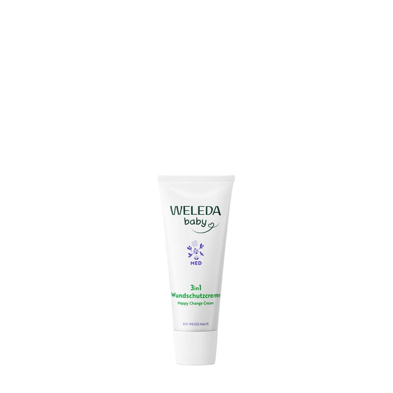 Weleda Baby Med 3w1 to produkt kosmetyczny przeznaczony do pielęgnacji delikatnej skóry niemowląt. Krem przeciw odparzeniom chroni i łagodzi podrażnienia w obrębie pieluszkowym. Formuła zawiera składniki wspierające regenerację skóry oraz utrzymujące jej naturalną równowagę. Produkt nie zawiera substancji zapachowych ani konserwantów, co czyni go odpowiednim dla wrażliwej skóry dziecka.Składniki/Ingredients