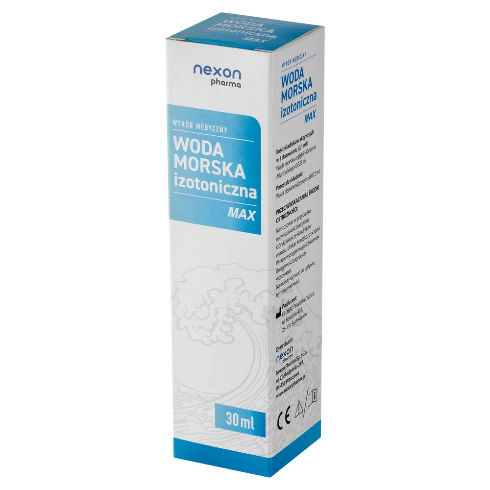 Woda morska izotoniczna Max to wyrób medyczny przeznaczony do codziennej higieny nosa, odpowiedni dla dorosłych, dzieci oraz niemowląt powyżej 1. miesiąca życia. Preparat zawiera roztwór wody morskiej, który wspiera oczyszczanie i nawilżanie błony śluzowej nosa, pomagając usuwać zanieczyszczenia, takie jak kurz, pyłki czy nadmiar wydzieliny. Regularne stosowanie sprzyja utrzymaniu komfortu oddychania, ogranicza uczucie suchości oraz wspiera naturalne funkcje ochronne i regenerację błony śluzowej nosa.